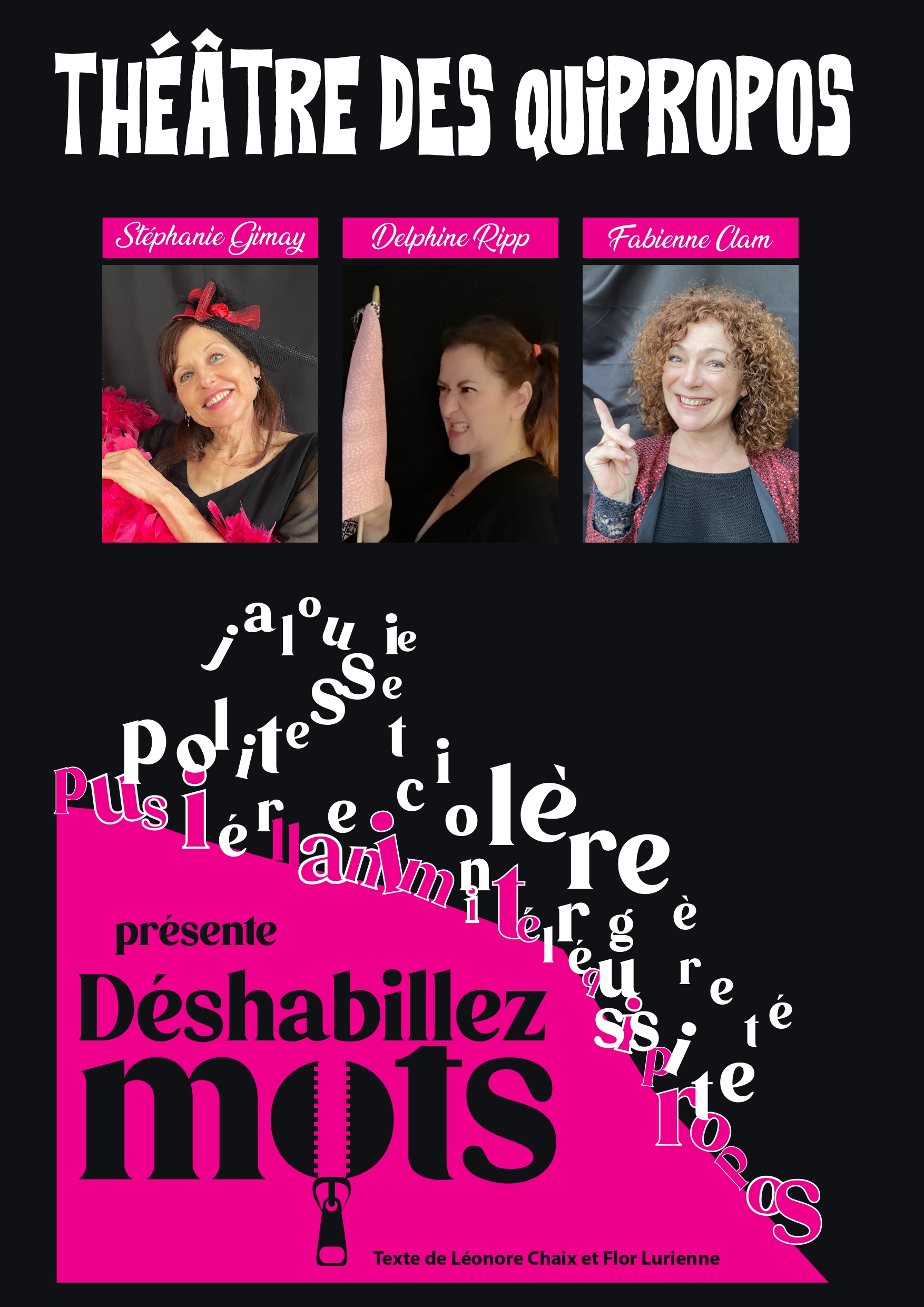 De la jalousie à la colère, en passant la politesse, les trois comédiennes se relaient pour déshabiller ou incarner ces mots.